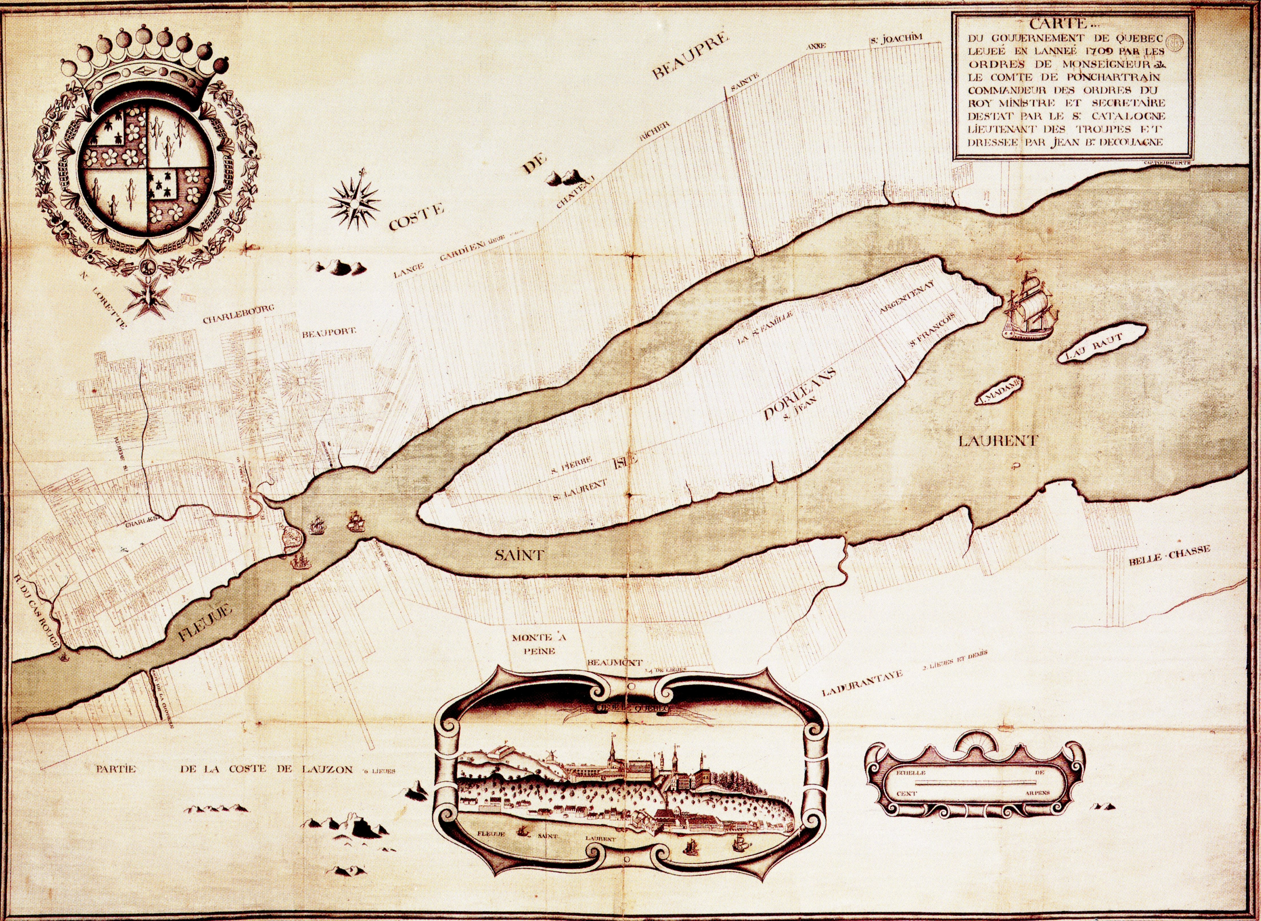 Carte du gouvernement de Québec par Gédéon de Catalogne, 1709